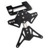 De kentekenplaathouder is vervaardigd uit zwart geanodiseerd aluminium. Deze is instelbaar en kan gemonteerd worden zonder enige aanpassing. Eventueel verder uit te rusten met BARRACUDA knipperlichten en kentekenverlichting (niet inbegrepen).