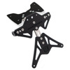 De kentekenplaathouder is vervaardigd uit zwart geanodiseerd aluminium. Deze is instelbaar en kan gemonteerd worden zonder enige aanpassing. Eventueel verder uit te rusten met BARRACUDA knipperlichten en kentekenverlichting (niet inbegrepen).