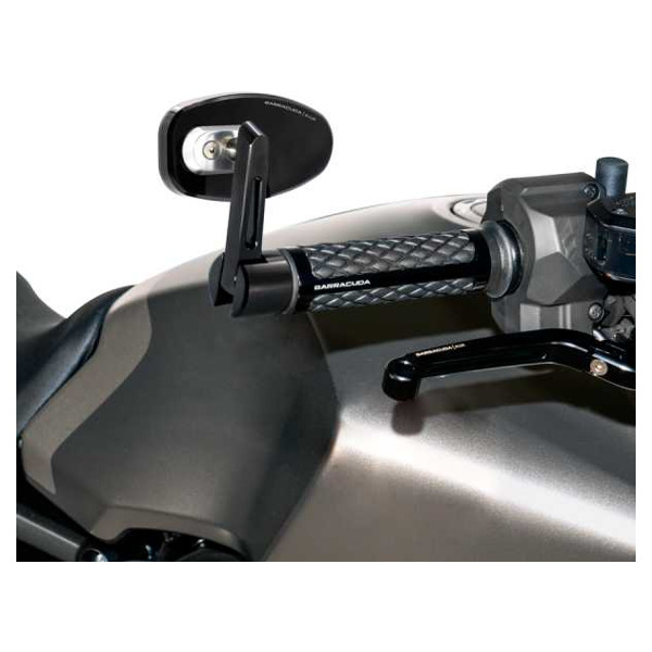 De Skin R spiegels worden gemonteerd op het uiteinde van je stuur (bar end) via een universele expansiebeugel. Heb je een Barracuda Racing-stuur met een binnendiameter van 17 mm? Dan kun je ze direct monteren. Rijd je op een originele stuurset van merken als YAMAHA, KAWASAKI, BMW of HONDA? Dan heb je een aparte adapter nodig.