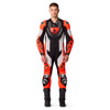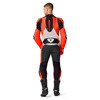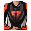 De geïntegreerde speed hump verhoogt de aerodynamica op snelheid, terwijl het pak uiteraard voorbereid is op knee sliders voor circuitgebruik. De veiligheidsnaden dragen bij aan de hoge beschermingsgraad van het pak.