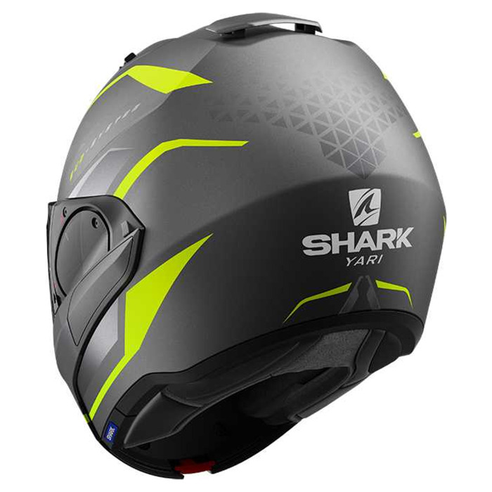De Shark EVO ES YARI Mat beschikt onder andere over een geïntegreerd zonnevizier en een efficiënt ventilatiesysteem voor ultiem comfort tijdens het rijden. Veiligheid staat altijd voorop bij de Shark EVO ES YARI Mat. Het is gemaakt van een sterke polycarbonaat buitenschaal die optimale bescherming biedt bij impact. Bovendien is de helm uitgerust met het Shark's Auto-up-systeem, waarmee het kinstuk automatisch omhoog kan worden geplaatst voor gemakkelijke toegang, zelfs met handschoenen aan. Daarnaast beschikt de helm over een uitneembare en wasbare voering, zodat je altijd kunt genieten van een frisse en hygiënische helm.