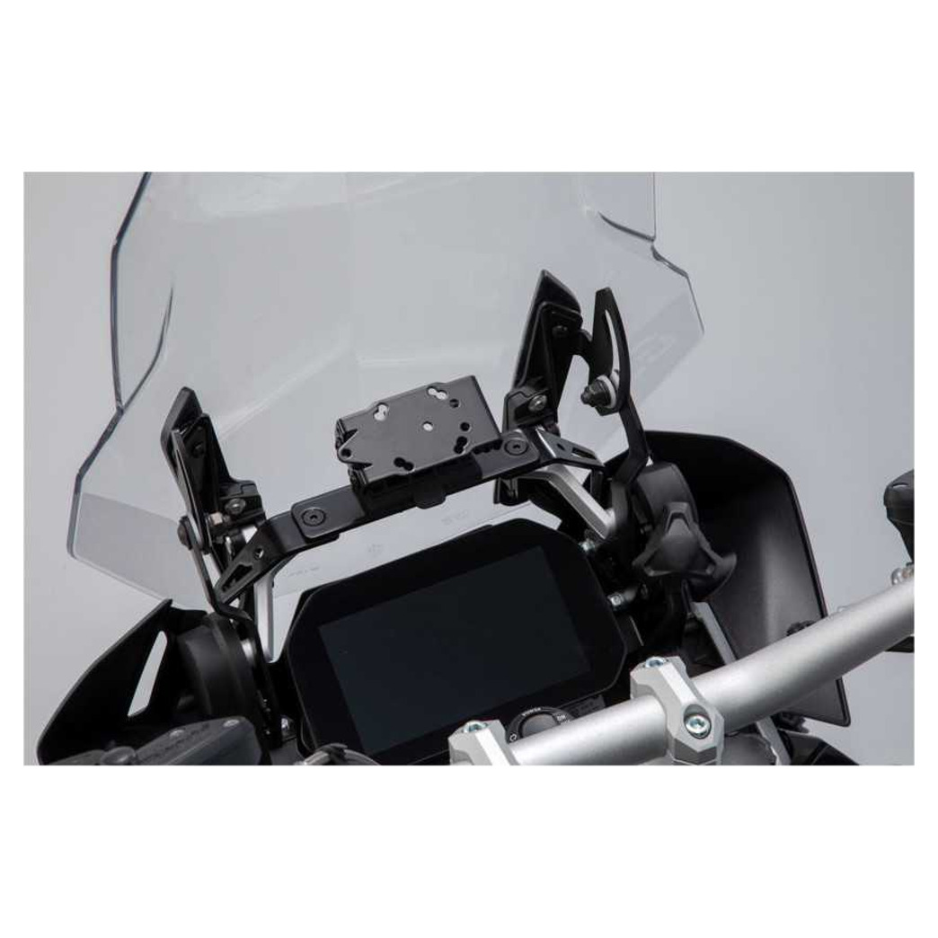 Verstelbare GPS houder waarmee door middel van het Quick-Lock principe het navigatiesysteem zeer snel te (de-)monteren is. Deze GPS houder is model specifiek voor de beste pasvorm en uitstraling en is uitgevoerd met een schokabsorberend systeem om trillingen op het beeldscherm te reduceren.